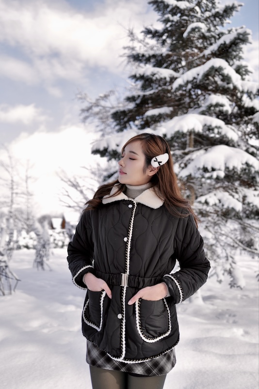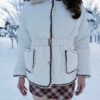 Fur Collar Puffer Coat – a stylish, contoured wind-resistant coat with a chic buckle closure that creates a sleek silhouette, preventing any puffiness. The eye-catching fur detail at the collar adds a touch of sophistication.